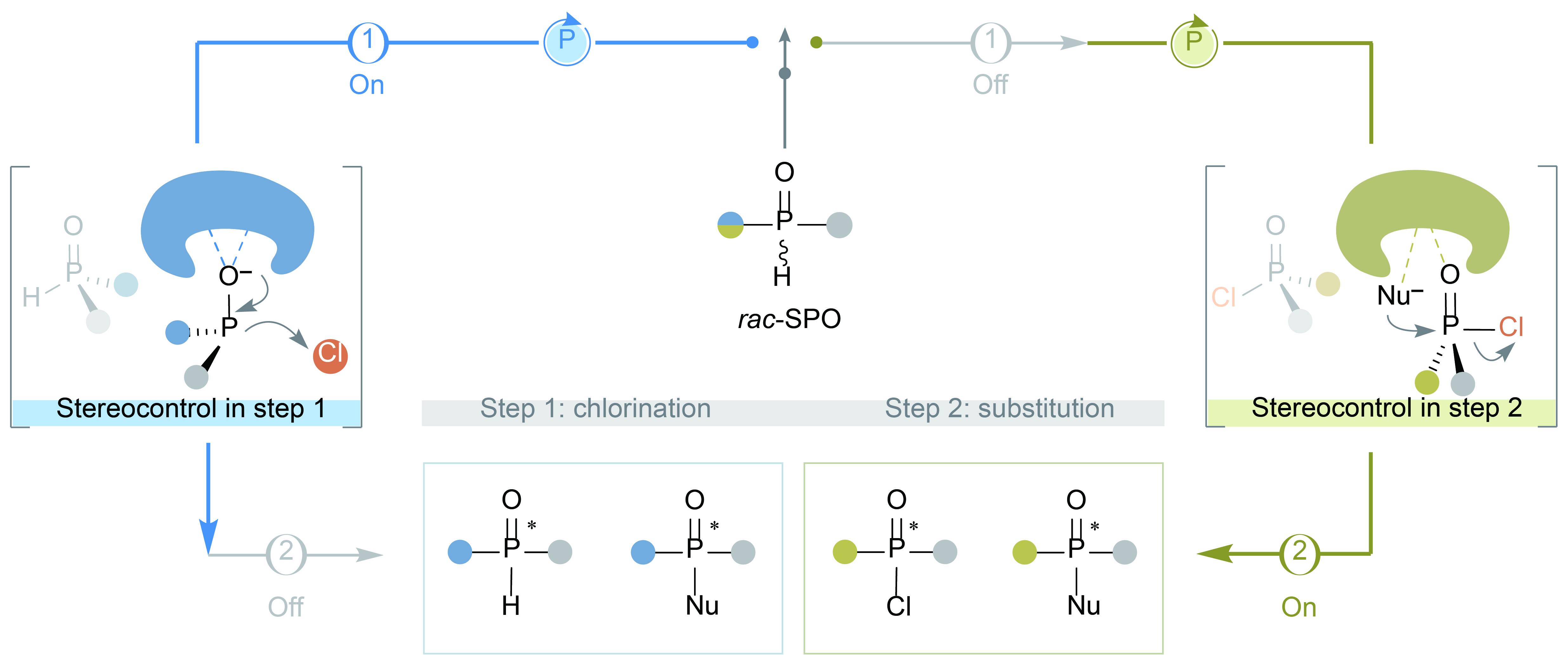 1945年,Atherton与Todd首次报道的Atherton–Todd反应(A–T反应),因其操作简易性与在构建重要五价磷化合物中的广泛适用性,一直备受合成化学界关注。该反应的不对称催化版本被认为是合成五价磷中心手性骨架的理想途径,然而这一转化长期以来难以实现,主要面临以下双重挑战:其一,反应历程包含多个基元步骤,实现对其中间过程的选择性控制至关重要(即步骤选择性调控问题);其二,体系内存在多种高活性的磷物种,为精准调控反应的立体选择性带来了极大挑战(即立体选择性调控问题)。为此,王天利团队的研究创新性地引入了逐级立体控制策略,建立了对简单外消旋仲氧磷化物前体的高效动力学拆分方法,进而合成了一系列具有高对映体纯度的五价磷中心手性平台试剂,包括磷氢化物、磷酰氯、次磷酸酯及磷酸酯等。这些高活性的手性磷产物可通过立体专一性转化,被用于合成多种重要功能分子,如手性膦配体、有机膦催化剂以及功能性寡核苷酸等。该方法不仅为关键磷手性化合物的制备提供了简洁、高效的合成路径,更开创了“逐级控制反应进程”的新设计理念,为不对称催化合成和手性药物研发等领域提供了新的思路与技术平台。
