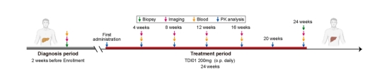 本研究构建了肝纤维化first-in-class新药研发的完整闭环:从发现血管微环境核心靶点ROCK2,到阐明其通过“血管旁分泌”信号驱动疾病的机制,进而以此为基础研发首创新药TDI01,并最终完成临床验证,为靶向血管的抗纤维化新药研发提供了从理论到临床的坚实基础。尤为关键的是,团队在临床试验中验证了对于该发现的转化价值,从而形成完整闭环。在人群中,TDI01的1期临床试验首先证实了其在人体内的良好药代动力学特征和安全性。随后,团队在肝纤维化患者中开展了Ib/IIa临床试验。在纳入的6名肝纤维化患者,5名患者在接受TDI01治疗后出现肝纤维化减轻迹象,表现为肝硬度值下降、胶原沉积减少、纤维化分期改善。此外,ROCK2的选择性在人体活检组织中得到直观印证。通过对患者治疗前后肝组织的荧光染色分析发现,TDI01治疗降低了所有6名患者活检样本中磷酸化-ROCK2(pROCK2)的量,而ROCK1和pROCK1的表达则未见明显变化。这一结果直接证实了TDI01在人体内可高选择性地抑制ROCK2,提供了TDI01在真实的人体中靶点特异性抑制的临床证据。