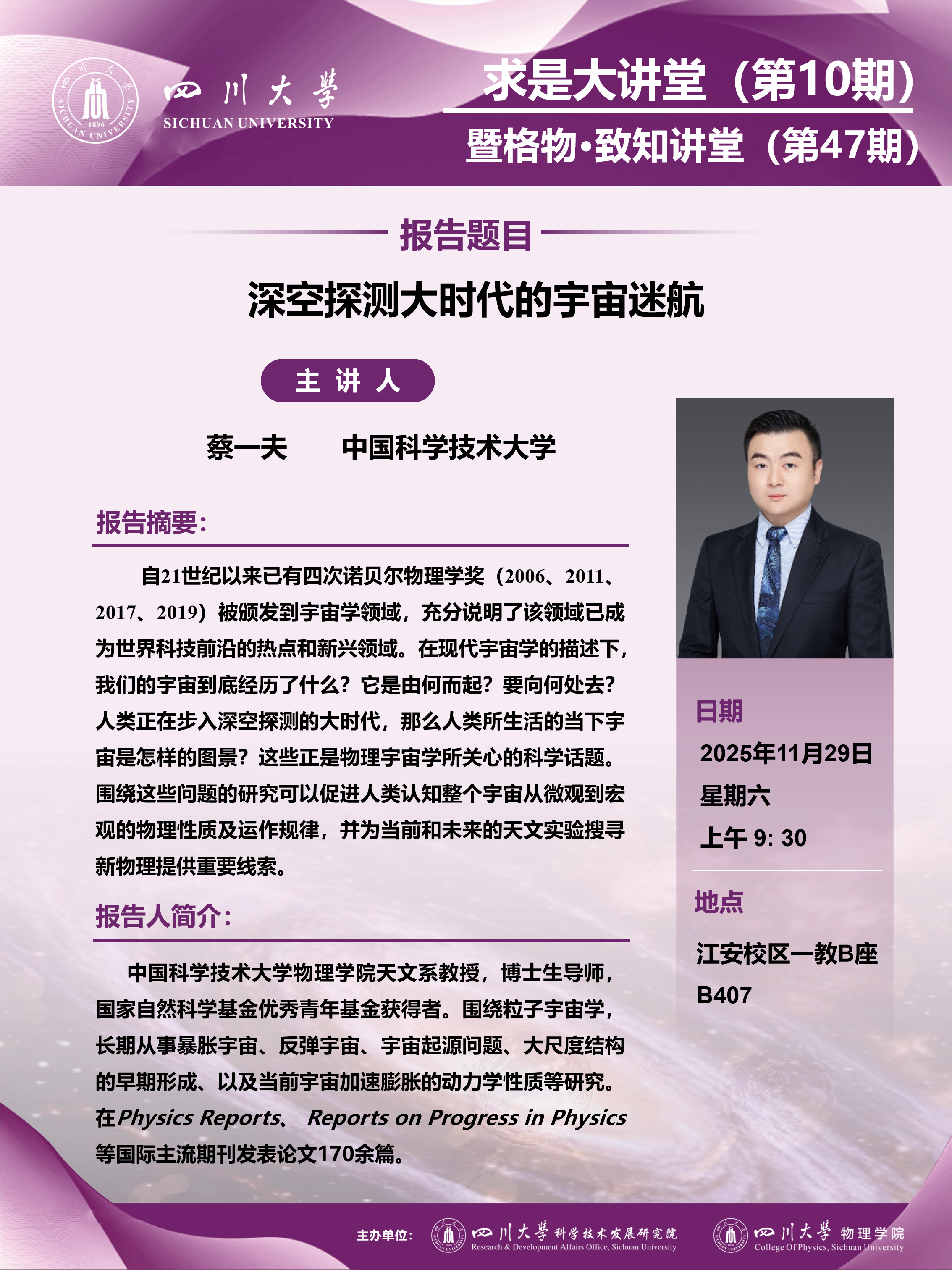 四川大学求是大讲堂(第10期)— 深空探测大时代的宇宙迷航
