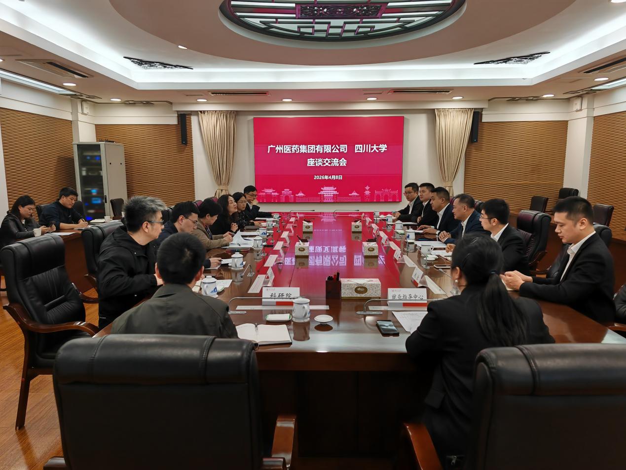 4月8日,四川大学与广州医药集团有限公司(简称广药集团)座谈交流会在望江校区明德楼召开。广药集团党委书记、董事长李小军,四川大学党委副书记黄园出席会议。广药集团相关部门及学校科研院、就业中心、化学、华西临床、华西药学、化工、生命、卓工等单位负责人及专家参加座谈交流会。